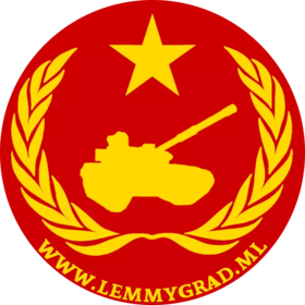 Das Logo von Lemmygrad. Zu sehen ist ein Panzer, als Anspielung auf das Wort "Tankie", und ein Ährenkranz, ein historisches Symbol des Kommunismus | |